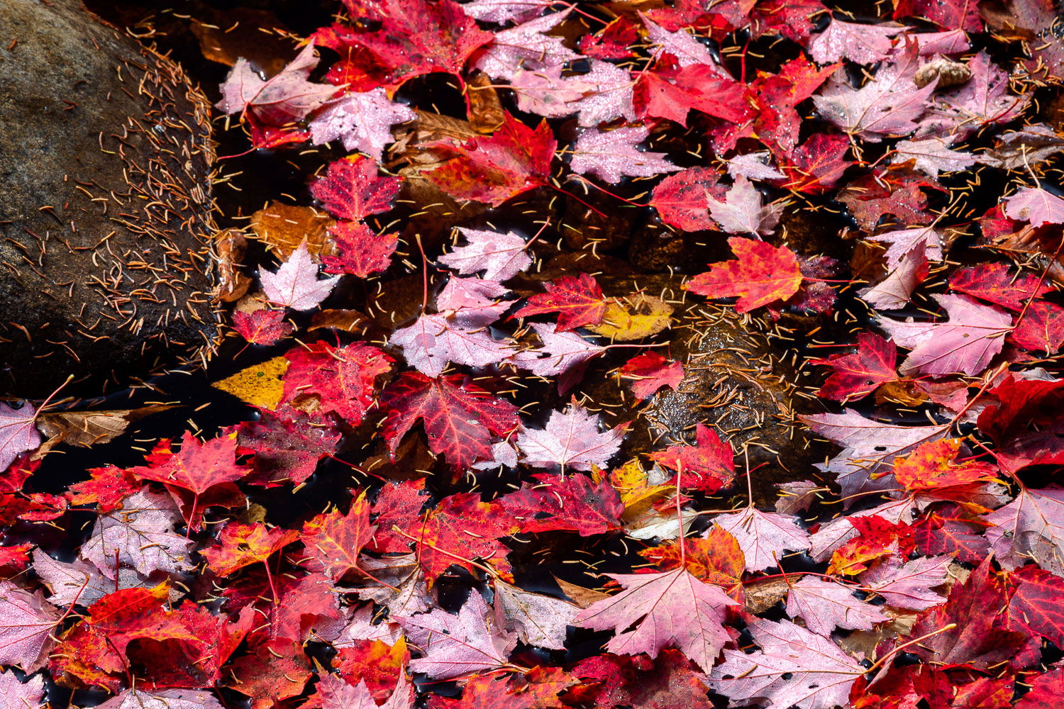 I love red maple trees. They are one of my favorite parts of photographing autumn foliage, and every year I try to find new ways to shoot them. They are the first maples to both turn color and lose their leaves. This image illustrates how crazy early foliage was this year, the red maples in Crawford Notch had significant leaf drop on 9/28, when normally they would be in full color during the first week of October. My hunt ended in September this year instead.