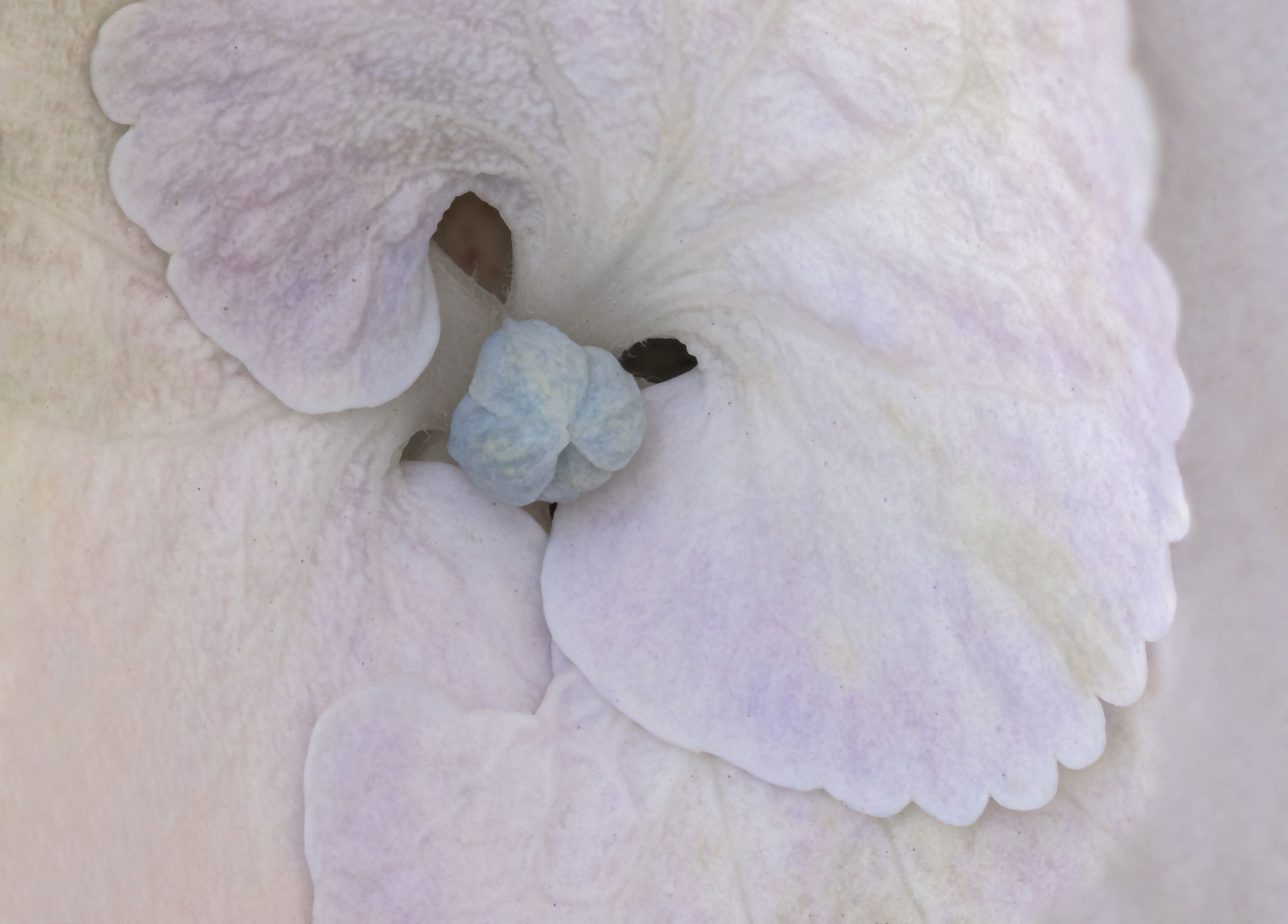 This is the actual flower at the center of a Hydrangea “blossom” before opening. Very small.