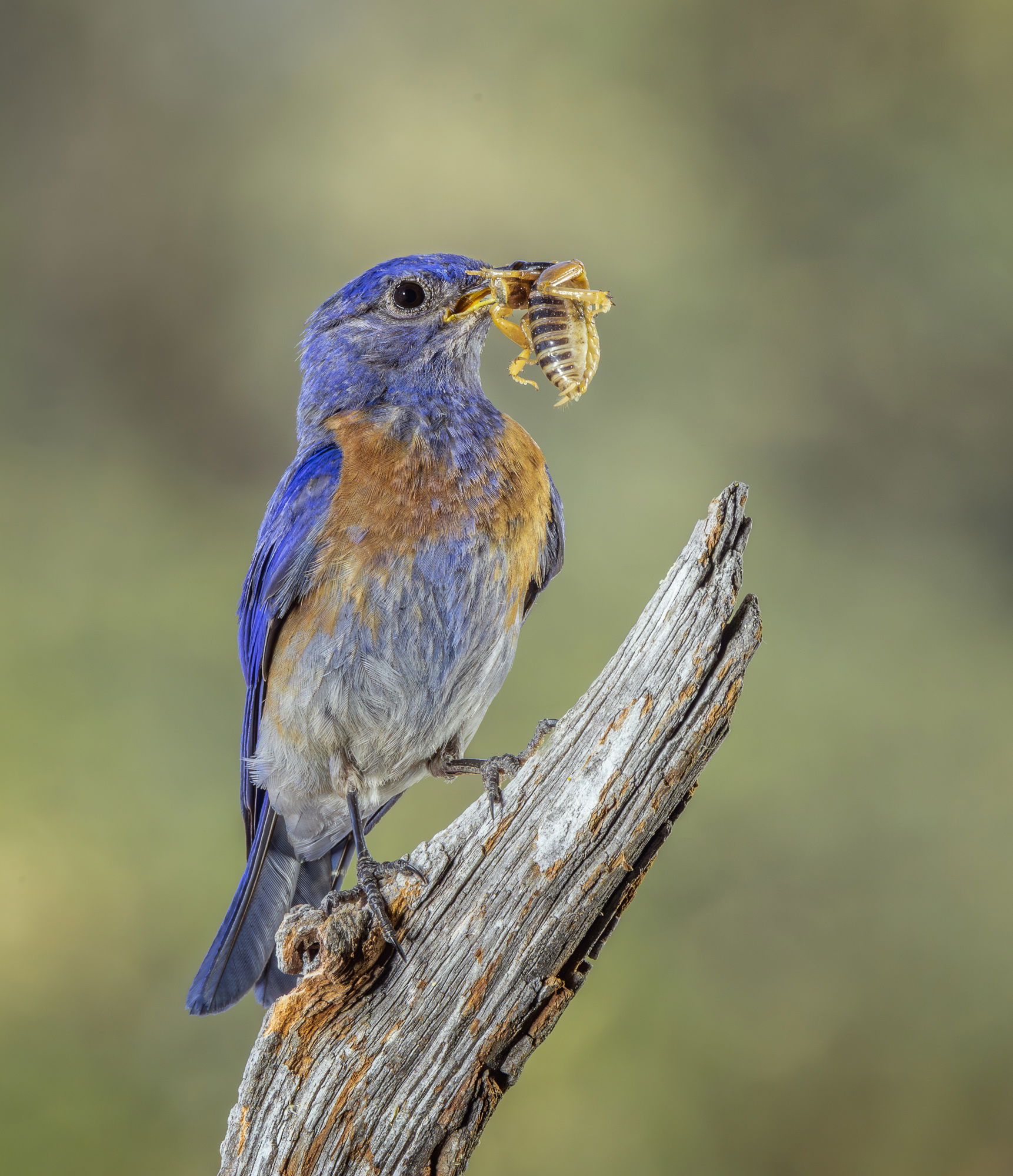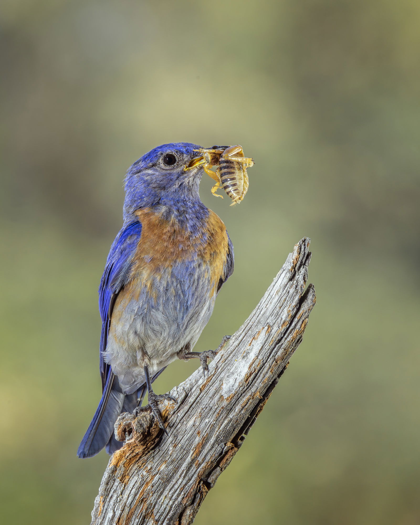 Excellent, Diane. The meal takes it to the next level, but the pose and detail in the bluebird is great. The background is pleasing and the perch is attractive and the lichen blends in well with the bird’s coloring.