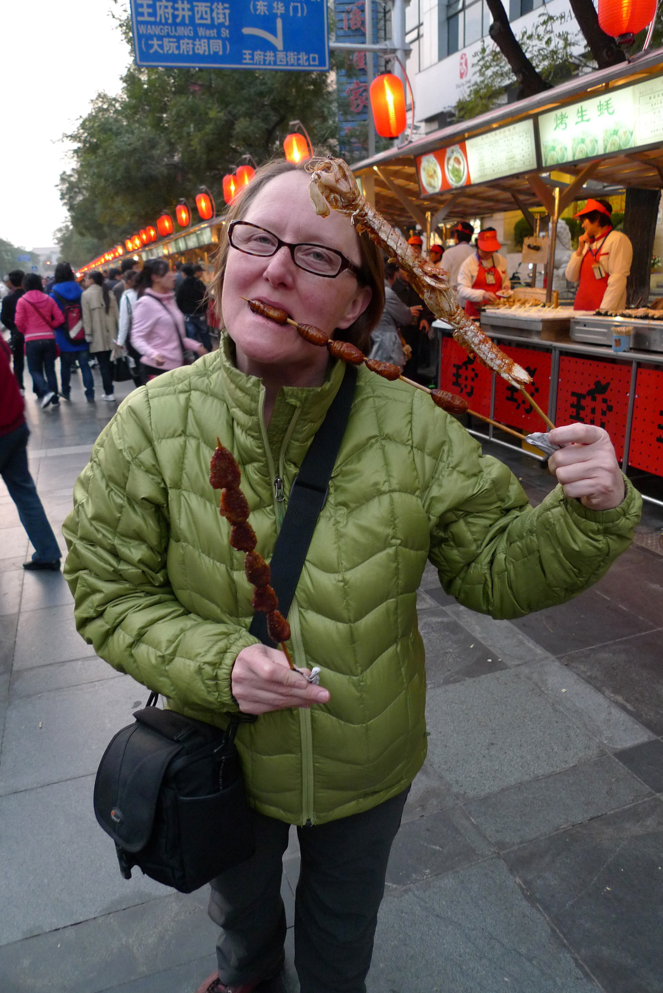 this is my partner eating bug cocoons at a street market in Beijing. This was taken about 2008. So yes, bugs make a nice snack. just went one of the many unusual foods we saw in China. then we didn’t have a bad meal at all in our one month visit and tour around the country