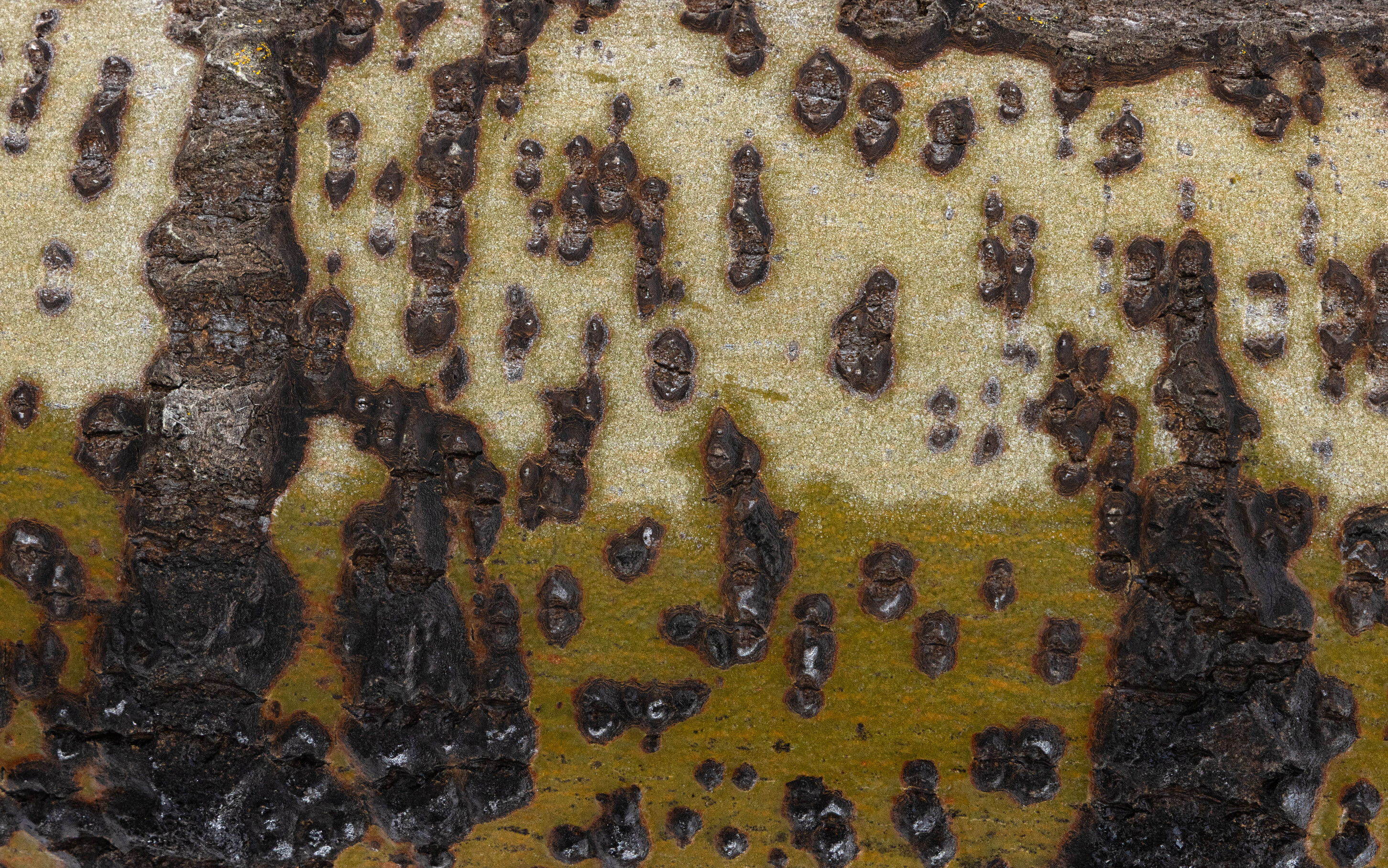 My eye stuck on the gnarled trunks of thelarge aspens in the riparian zone: they were bi-colored, the green-yellow where it was wet contrasting with the lighter tones where it was dry. And I wondered what caused all the nodules on the trunk, are there stories associated with each one?
