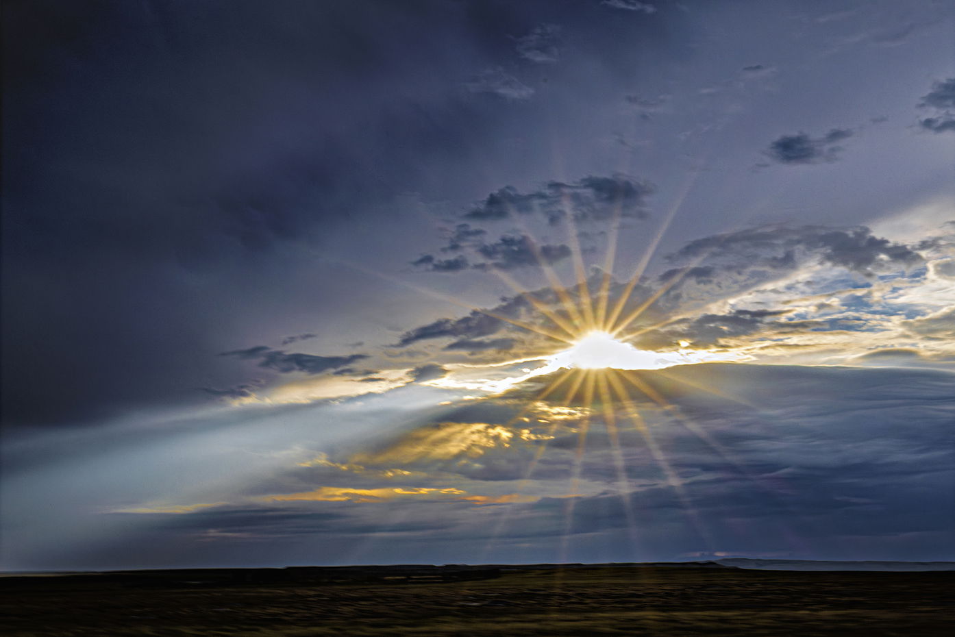 A lovely capture Robert. You have lovely colors and tones in both the white and yellow-tinged rays. I would suggest you blur the ends of the rays furthest from the sun, and show some glow on the landscape beneath.