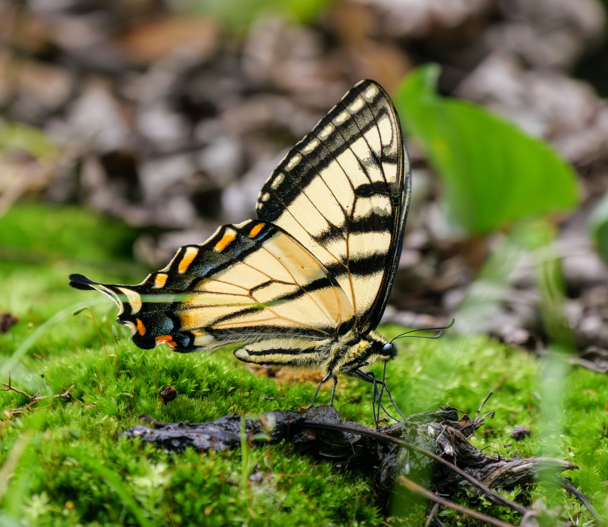 Kris, you’ve got a fine look at this Tiger. It’s colors look fine to me. They do tend to come in a variety of yellow saturations. I could wish that the ooff leaf coming over its wing weren’t there, but you did very well under challenging circumstances and that’s a subtle, minor nit. You’ve got excellent sharpness in the BF.