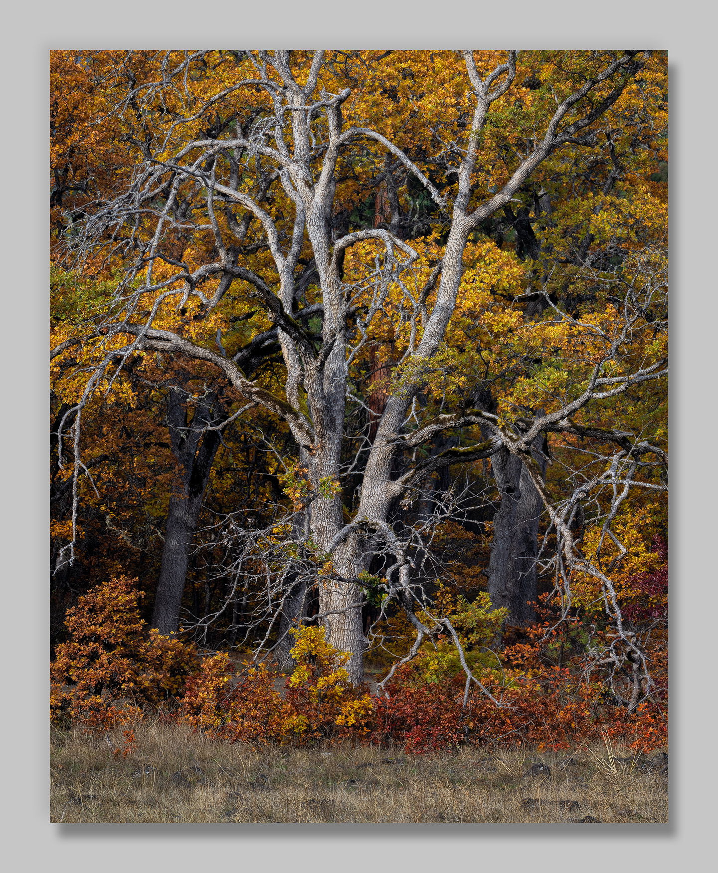 Heck yeah! The composition is well balanced and includes everything a viewer needs. A great subject front and center, two well placed darker trees behind the main tree, gorgeous Fall colors, branches with tons of character and some really nice foreground shrubs to seal the deal. Well done, John!
