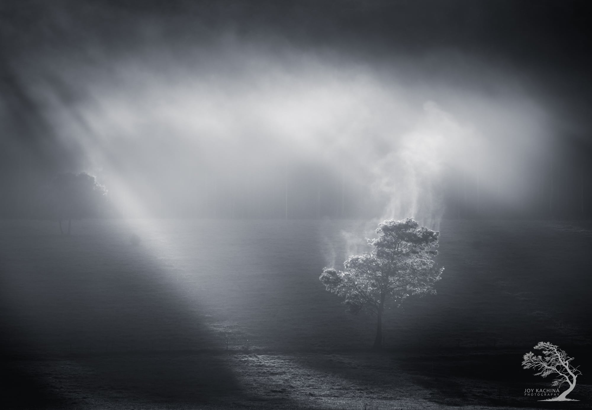 Joy, catching the mist rising from this tree with the strongly angled lighting is magical. It’s truely nit picking, but your strong, sharp logo at the same angle from the tree and the light looks like there’s another tree there in the corner. I’d suggest darkening it and possibly moving it to the other corner.
