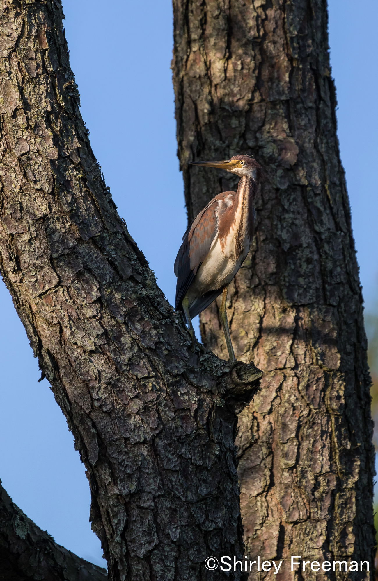 I like your crop much better than mine, Keith. Thank you. Not sure what you mean by “get more separation between the heron and the tree”? Are you saying that cropping it like you did separated him more from the tree? Yeah, I was pleasantly pleased to find a Tri-Color up in a Pine tree! I saw him (or maybe another) feeding in the water earlier. I don’t think I have ever seen one in a tree before. I like the way the morning sunlight was hitting him too.