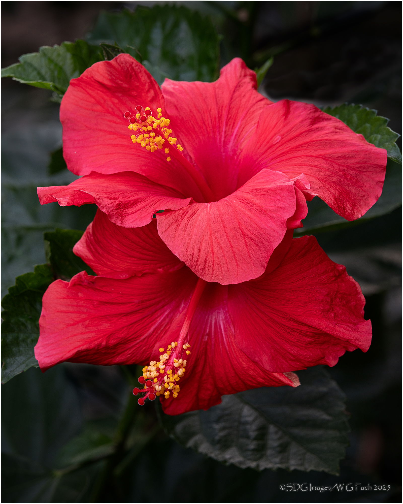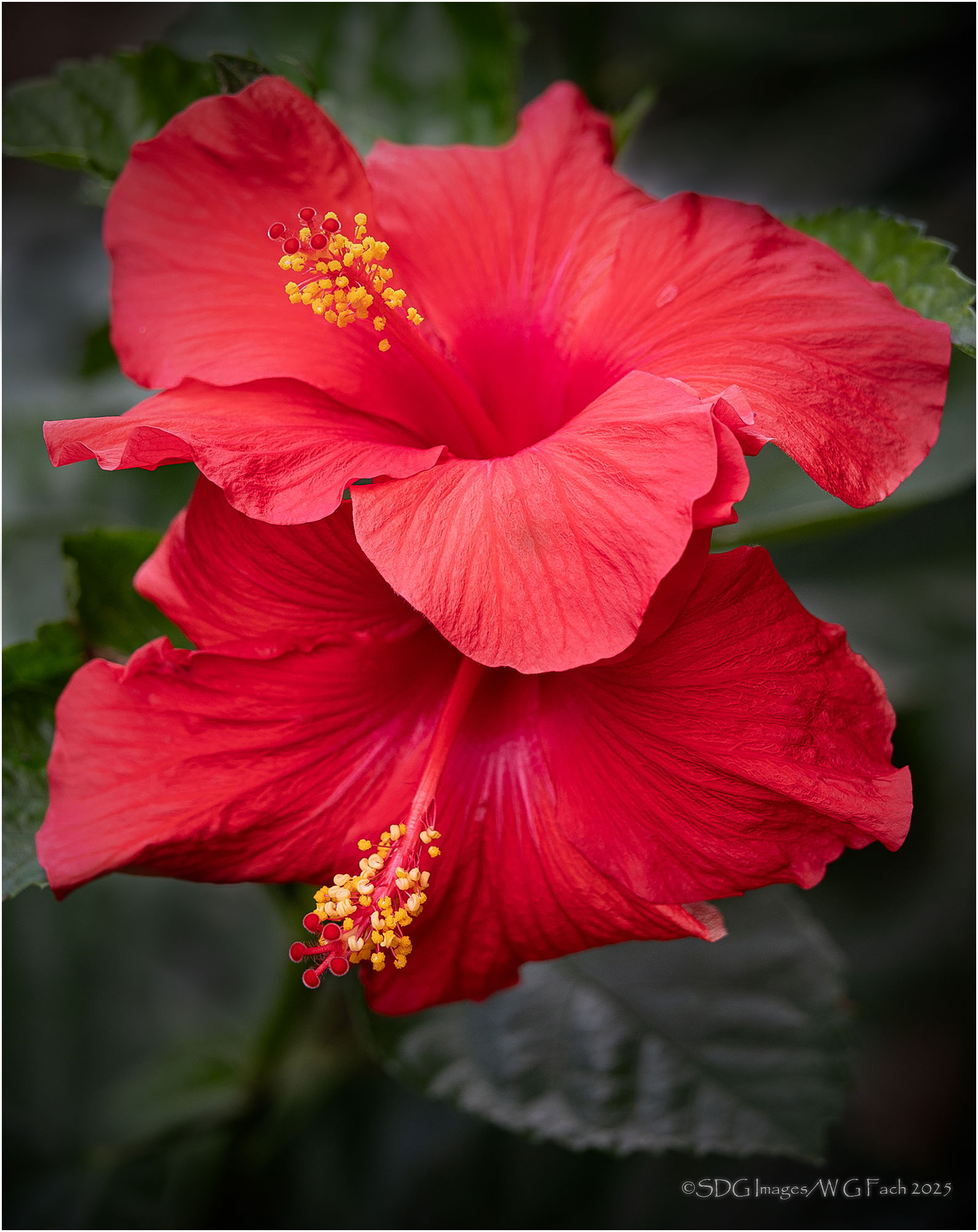For me the Stigma on a hibiscus must be sharp. It’s the first thing my eye goes to. The plane of focus was really close on these two so I was able to get both sharp with a single f11 capture. Just for fun I did a two image stack at f5.6 with critical focus on each stigma. Do you have a preference for either presentation? I did have to do some cleanup on bright BG leaf reflections so you may see some subtle differences in the URC especially. All comments welcome.