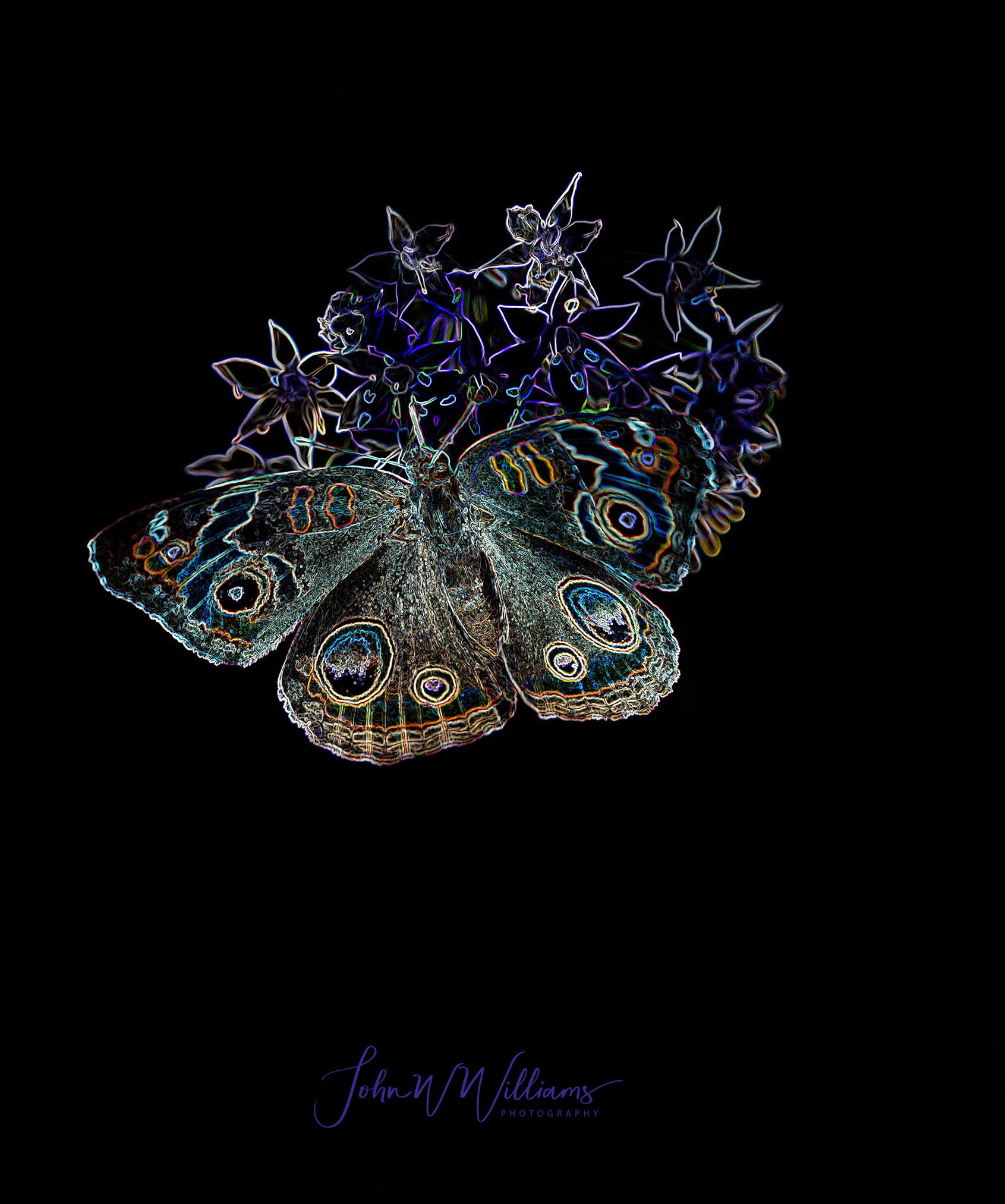 Wayne, I don’t think I have seen this treatment before, but it is pretty neat. I see one little speck of white in the black BG below the butterfly. Very nice.