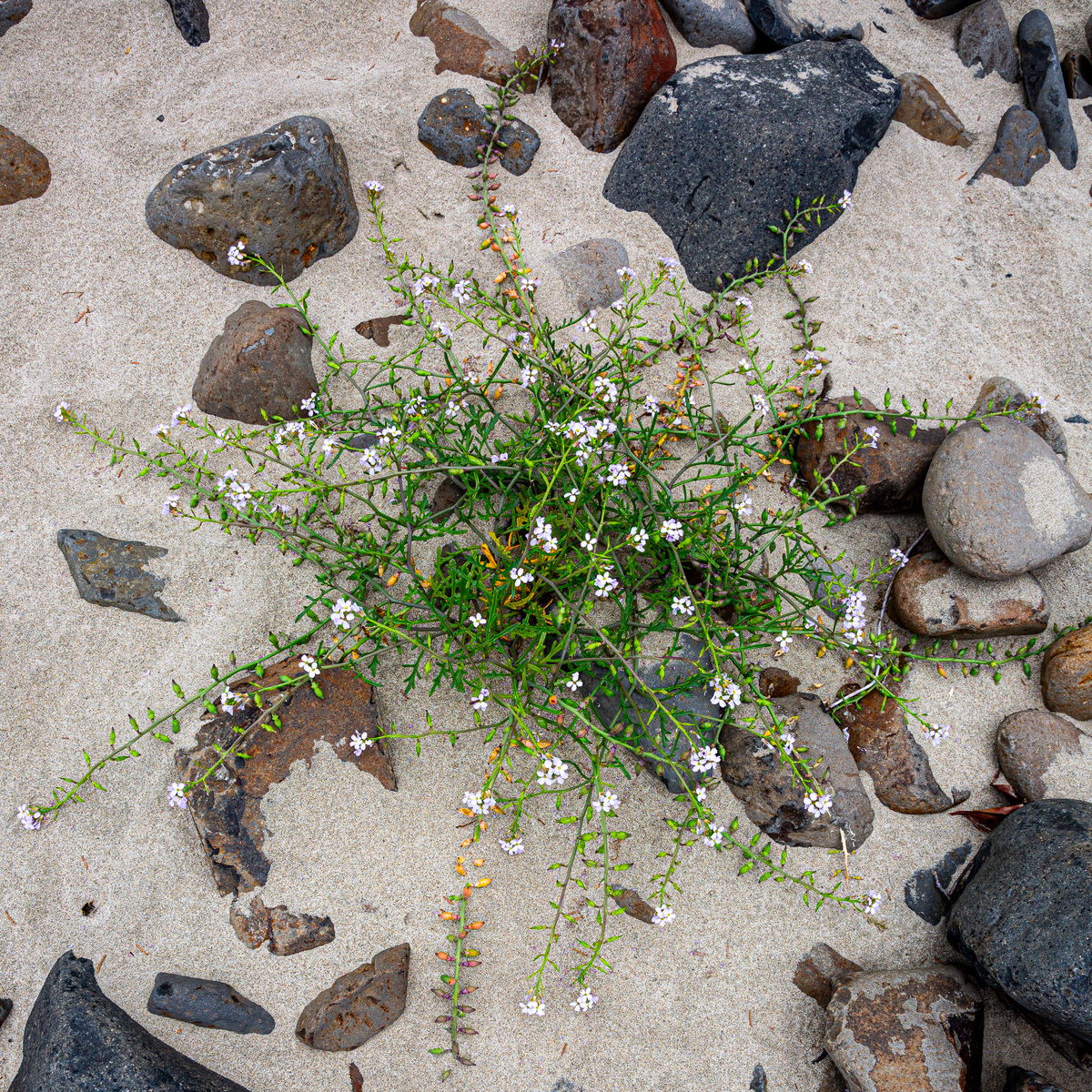 A beautiful image, Marylynne. I love the radial patterns of the plant juxtaposed with the random arrangement of beach stones. Very well seen and executed.