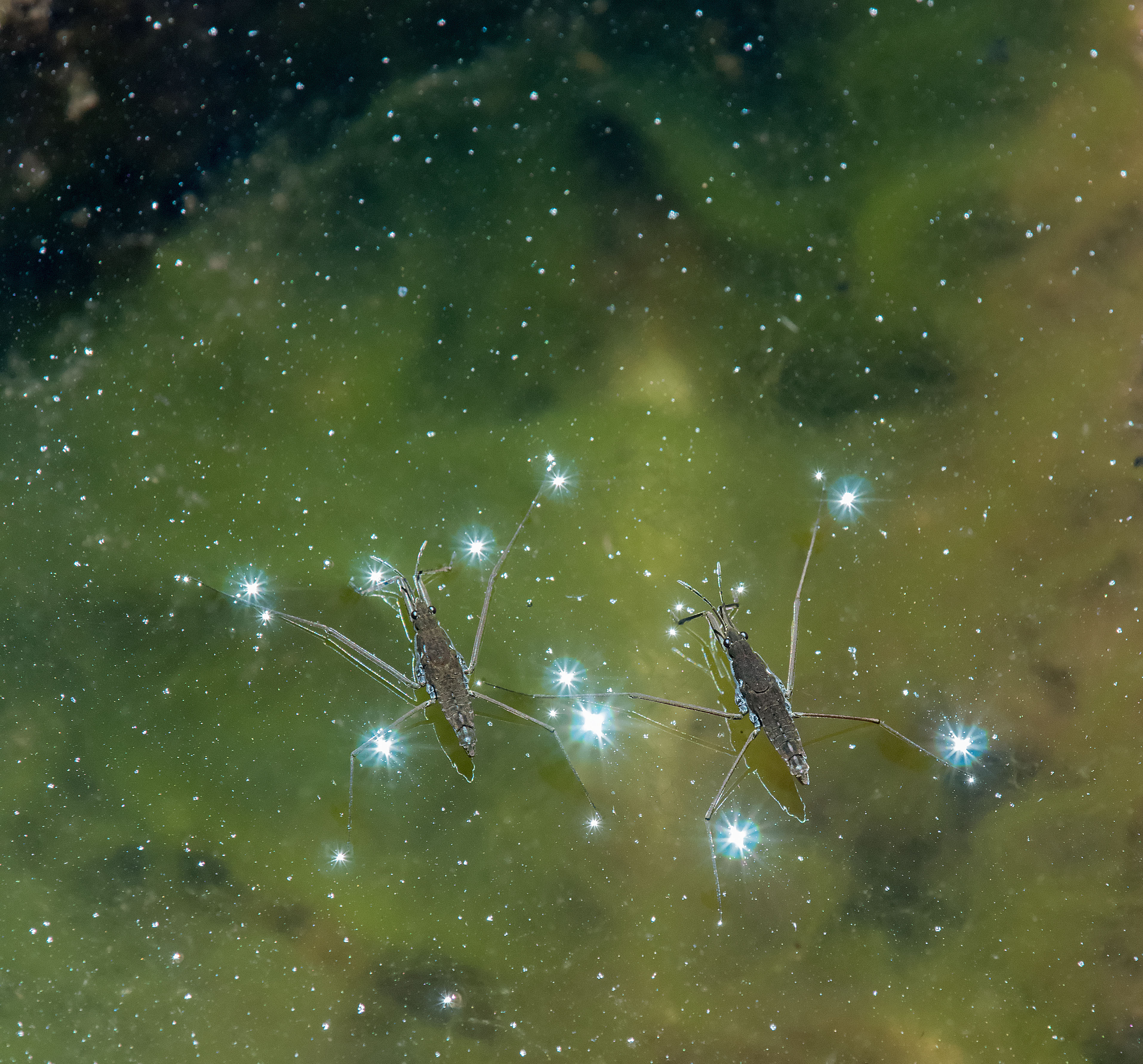 Steven, the starbursts and algae do give this a “Hubble telescope view of the universe” feeling. Getting two water striders in the same frame is also a challenge.