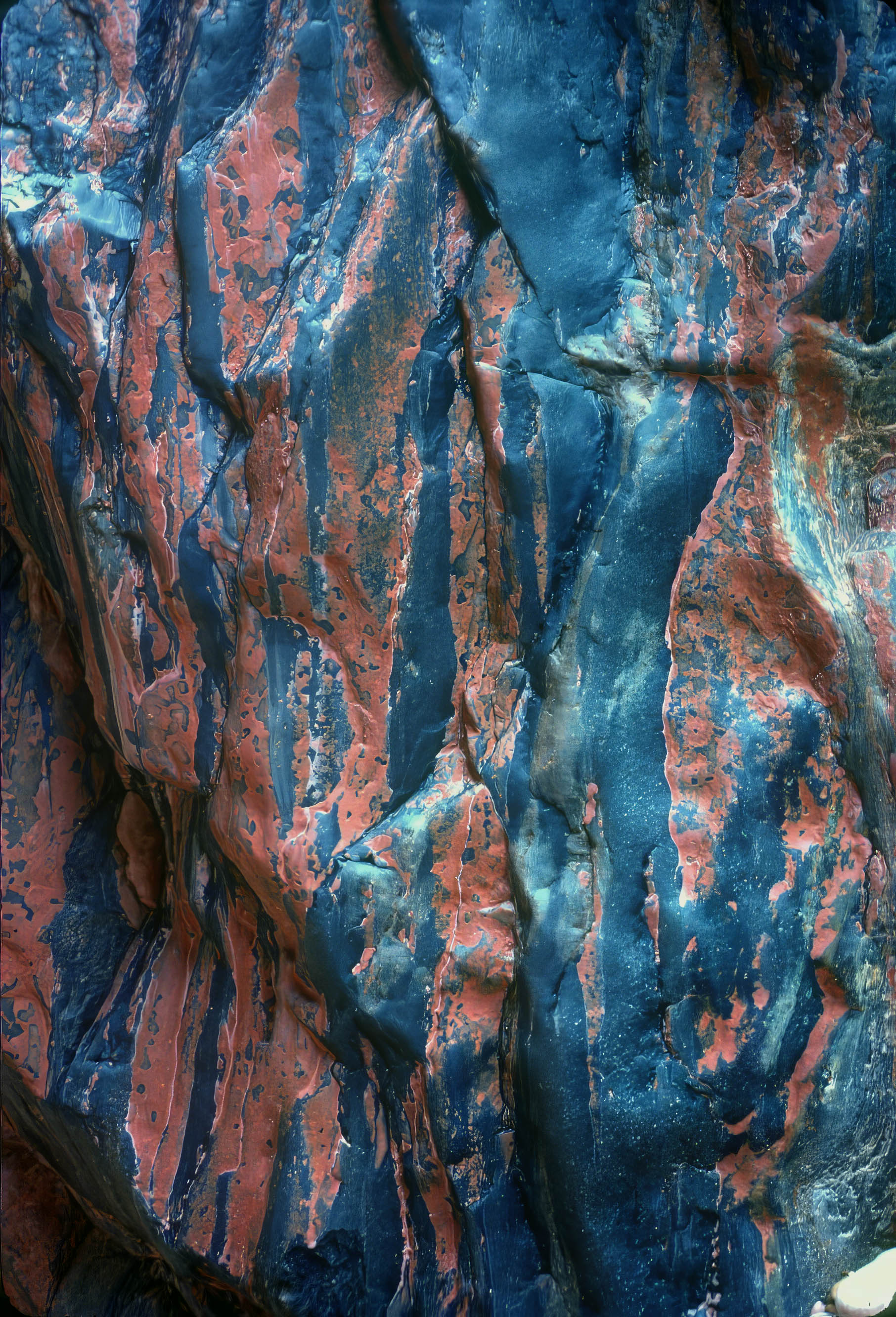 to be honest, I don’t remember taking this or where I took it. It’s from a slide, Kodachrome, dated August 1971. I must’ve been in Colorado, or I was out working for a bluegrass’s band as roadie. We worked all over Colorado and the West and even the East, Texas, Arkansas. In fact, I have a background with the geology degree and there’s not much I can tell you about this. It is so different than anything I’ve ever seen before from the standpoint of being a mineralogist. Well it’s a wonder and it’s pretty impressive. The smooth surfaces were all created by water running down the face of the rock wall here. It took millions if not billions of years to get to this point. I think it’s quite impressive. I can see now that I posted the wrong image. The correct image has the right lower Corner the same colors rock above it and the left lower corner is a little brighter and you can actually see the formation.