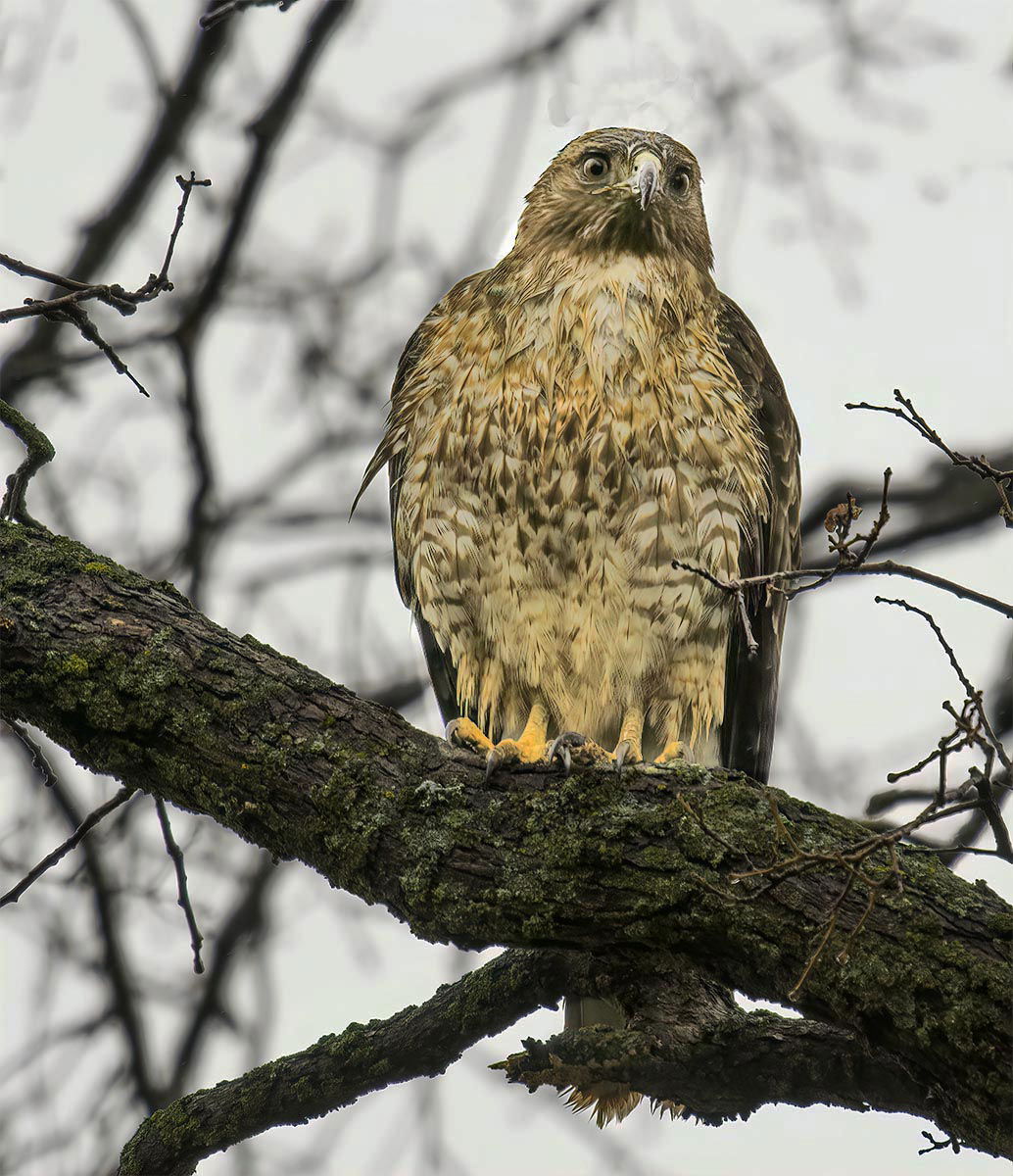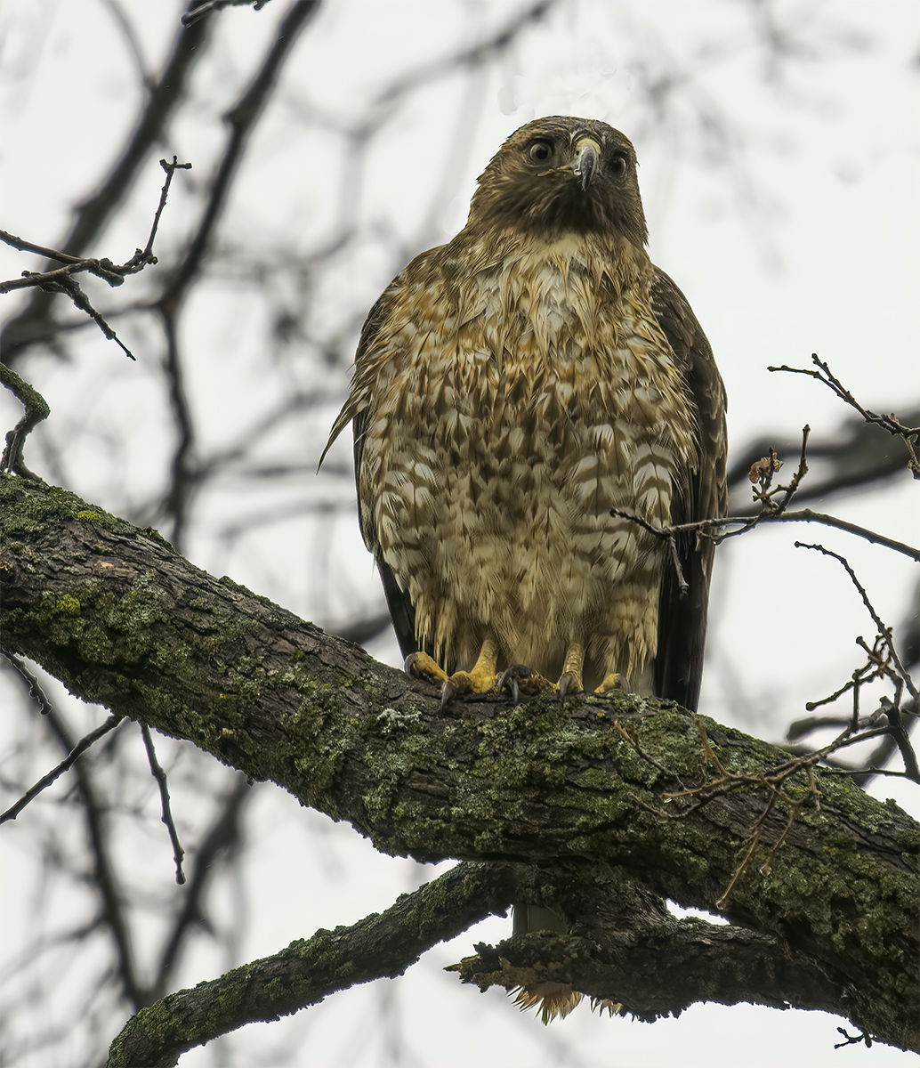 I had the good fortune to have this Red-tail fly up and land in a tree right at the edge of the little country road I was driving on and, for some reason it allowed me to stop, grab my camera and shoot it. Maybe it was just sick of flying in the rain. It didn’t look like it was having any fun. It was probably giving me a, “What are you looking at?!” look. Shot with my D500, Nikon 2-500 lens, Nikon 1.4 TC, 1/500th, f/8.0, ISO 200, 550mm, cropped to 3200 x 3712, hand held