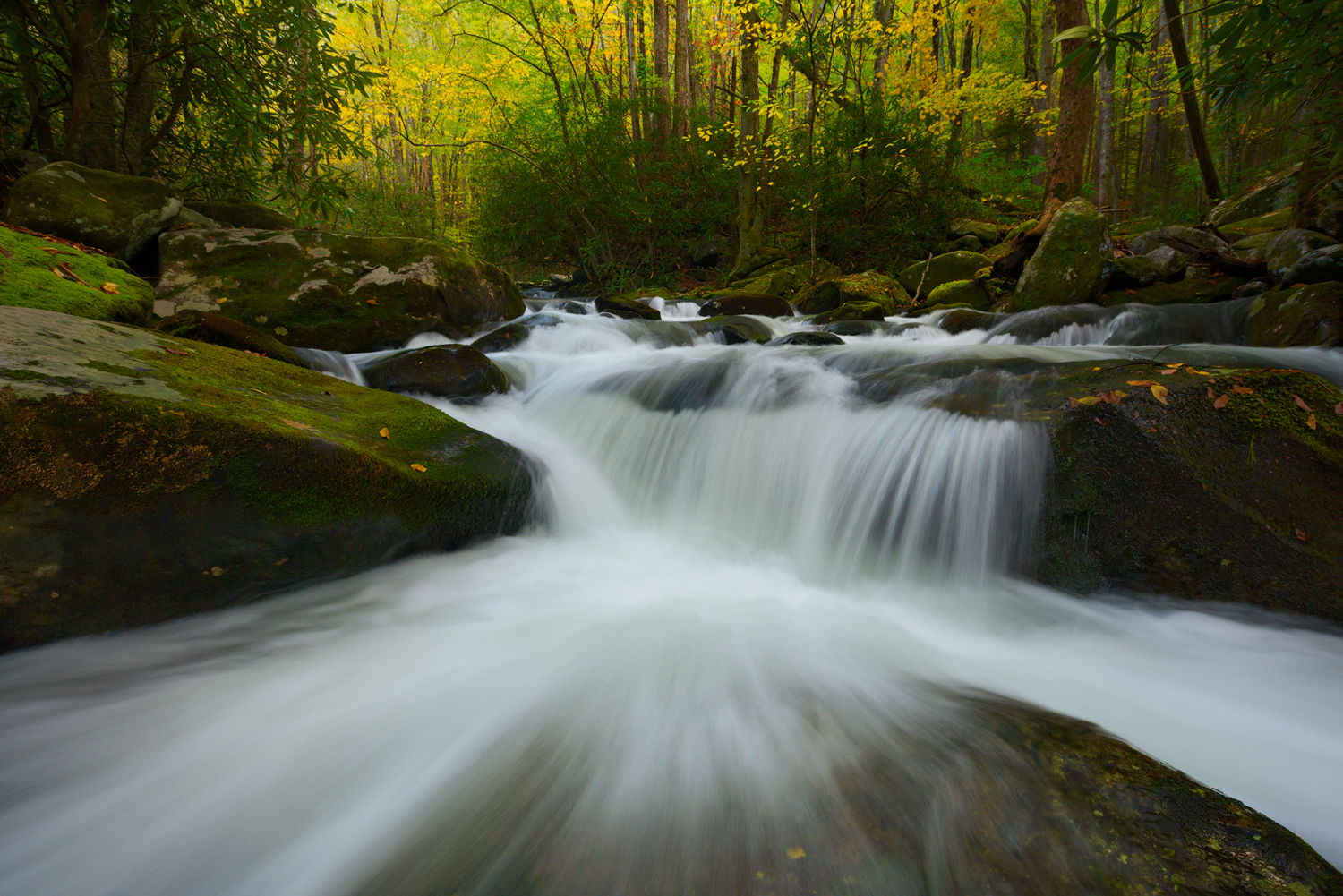 I just love being near the rivers and streams of these mountains. A few years ago, I bought some chest waders so I could closer to the rushing water…can’t explain why, but being in this water is definitely one of my happy places. This is Thunderhead Prong in GSMNP, early Fall image.