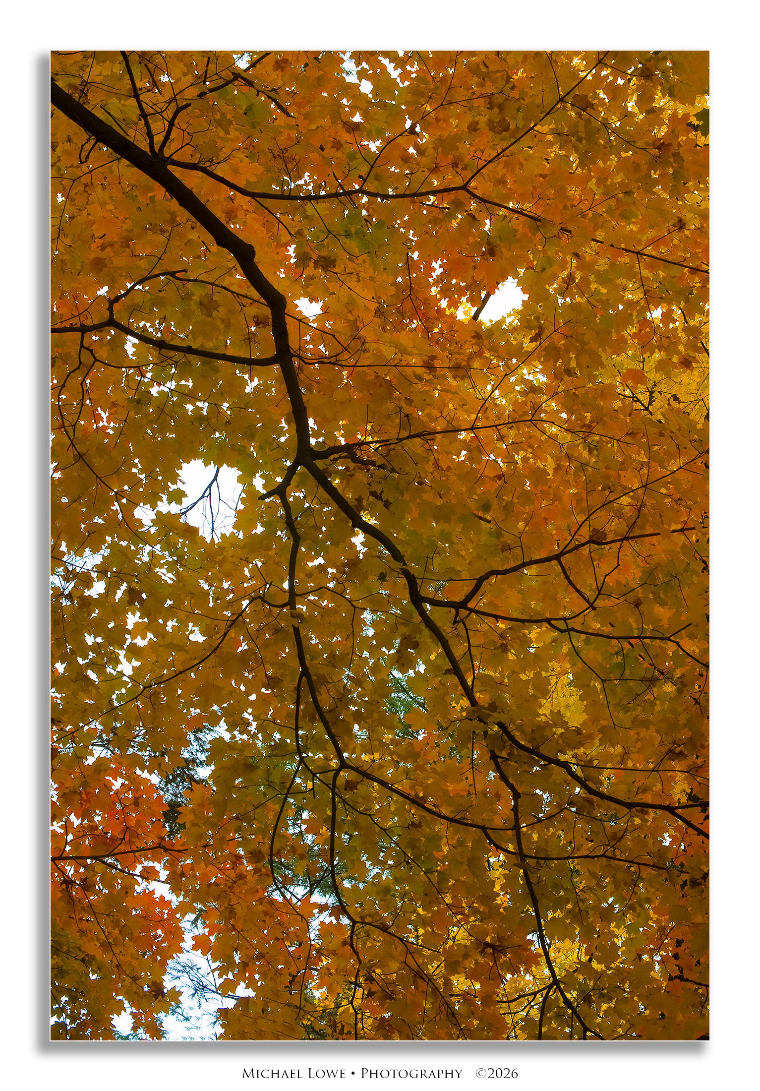I too like the way the branch angles into the image from the ULC with it’s downward trajectory toward the LRC. I also am enjoying the way the smaller branches radiate outward as they fill the frame with those colorful autumn maple leaves. The color looks to be peak. Since you are having a problem I thought I would play with it a bit until you get your issues fixed. I only filled in those two upper bare spots as I like the one along the bottom edge with the green leaves in it. I also reduced the saturation of those green leaves that @Mark_Seaver mentioned. I also lightened the scene with a small levels adjustment. Just my opinions of course. I quite like this.