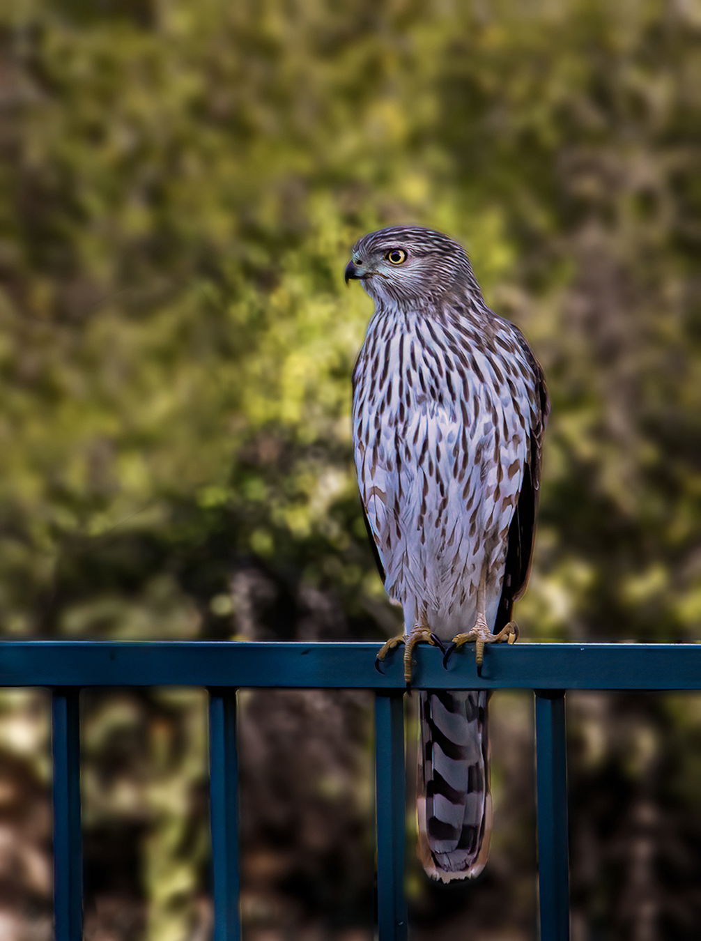 I don’t like pictures of birds on artificial structures but, she(?) just came in for a drink and then hung out on the fence. Probably a female, juvenile Coopers judging by the size.