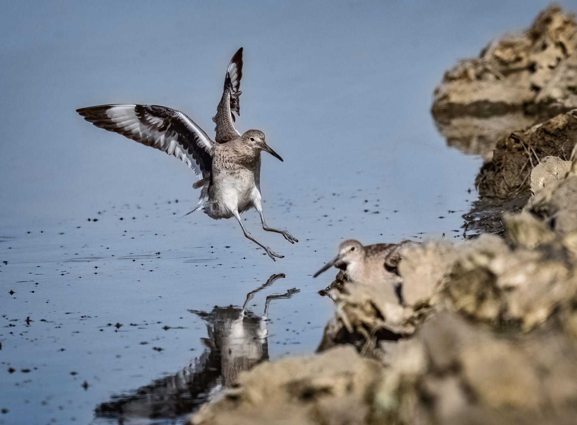 Very nice landing shot, David , and a comp is well balanced the blue water works with the gray color of the Willet. Great sharpness through the wings and a wonderful underwing view. I’m not bothered by the water at all, too much to clean up and I think it adds to shoreline landing . So tough to know what f stop might capture the rocks, they look to far away from the focal point. Do you think it coming back to the nest?