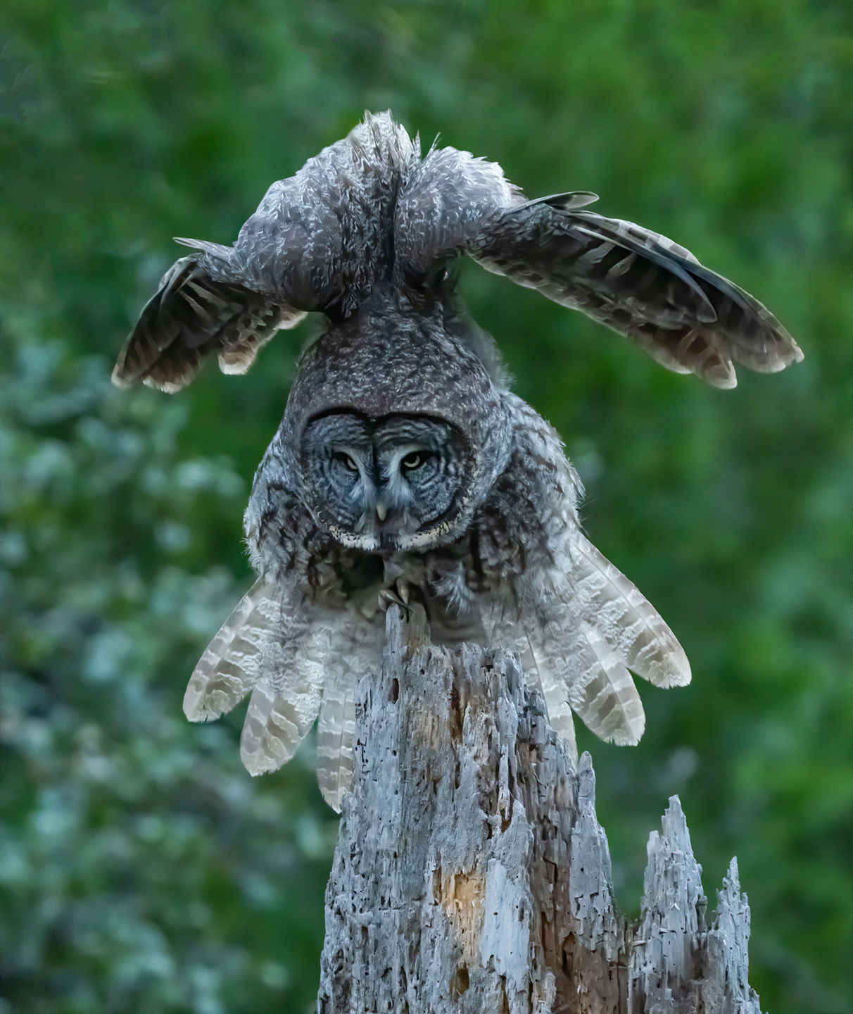 I posted this guy here recently in a more… stately pose. He let me photograph him for over a half hour. I got lots of captures including this one with him doing a little gyration with his wings. Whole different look.