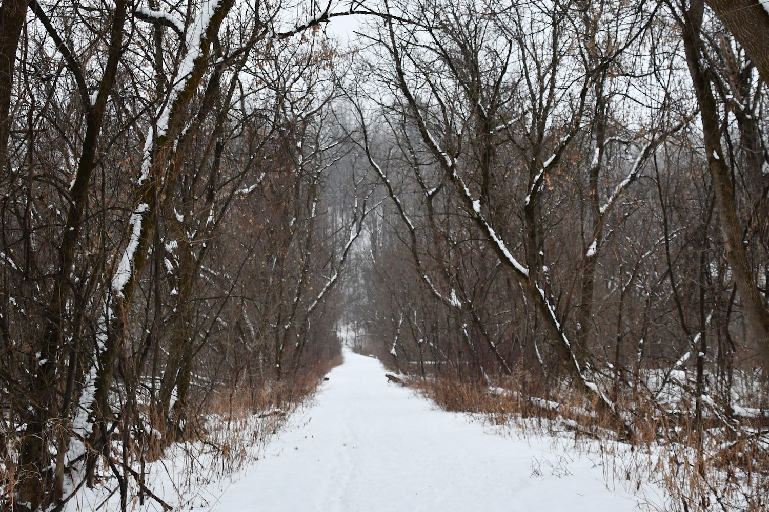 We had a fresh snow last night, and this afternoon I went out in it, in a favorite natural area nearby. It was dark, and hazy, and mysterious. I enhanced the mystery with some adjustments in Lightroom, including making it less contrasty (the opposite of what I am usually inclined to do) and giving it a sepia cast.