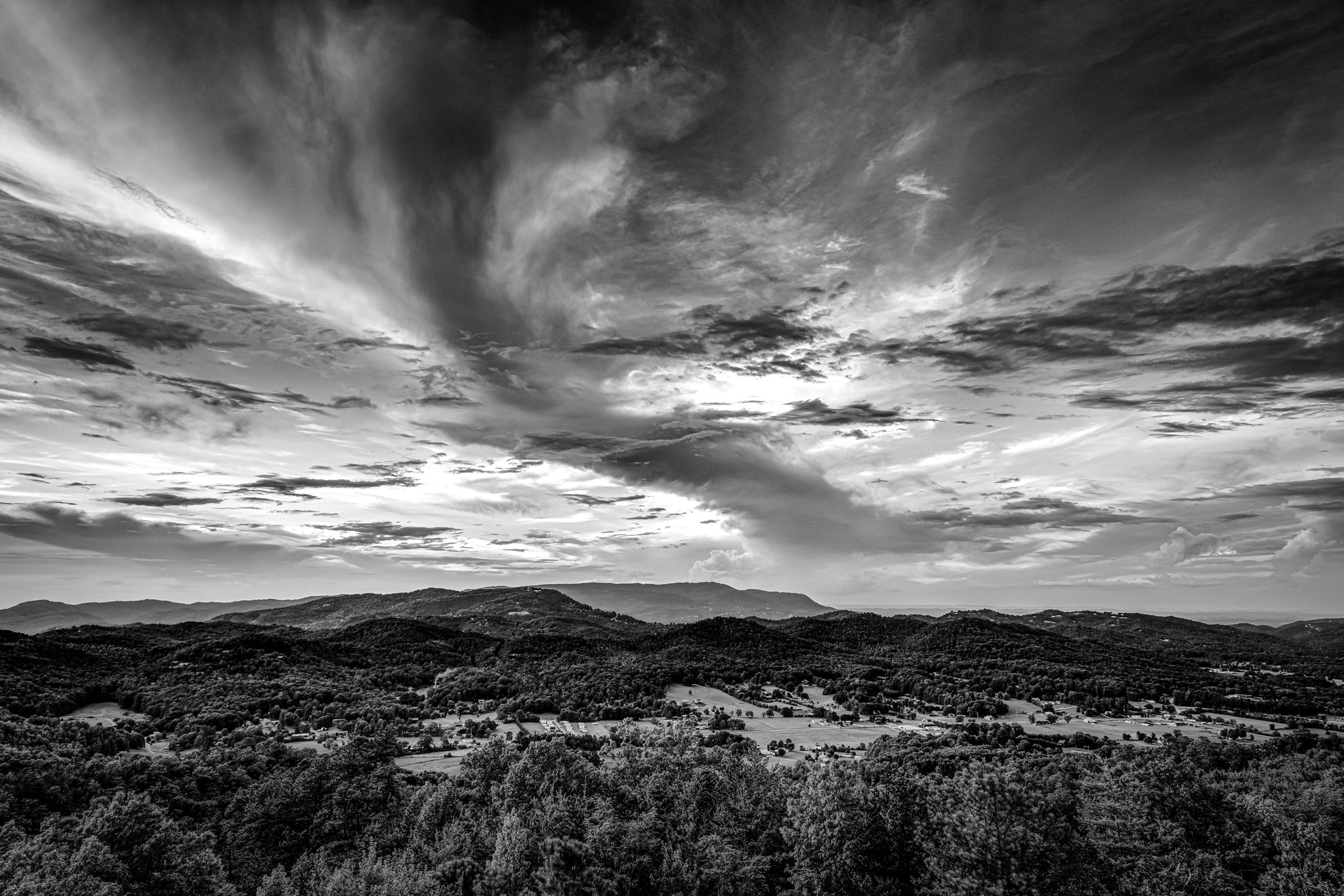 B&W version of “Witch’s Trail” over West Millers Cove, TN