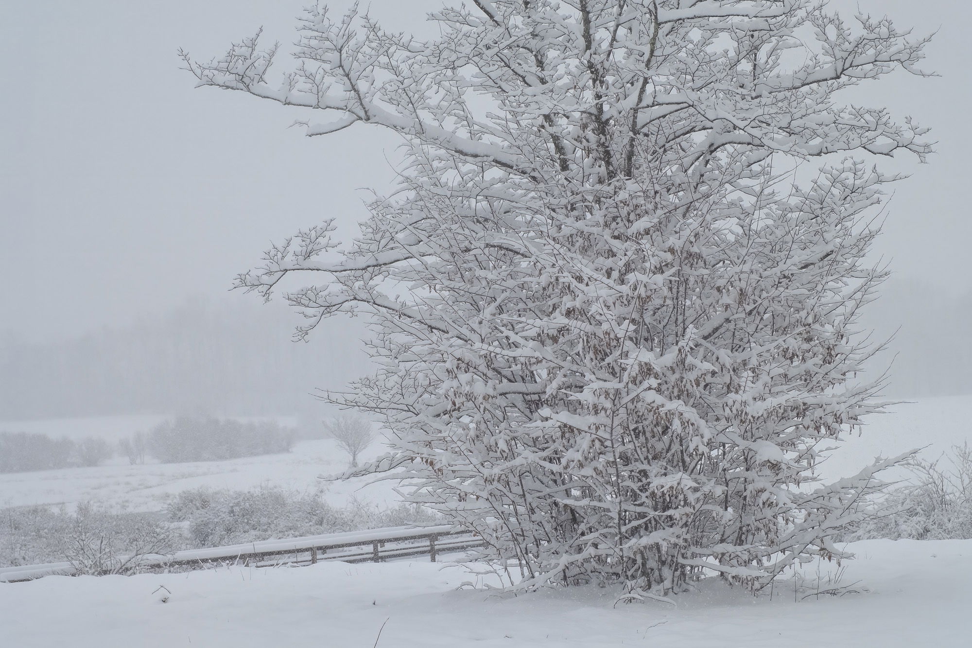 Harvey: Brrrrr! That point comes across emphatically. I do like this as is. My immediate impression was that the tree dominates the scene so much that the BG is almost irrelevant. I’m OK with that but I’m wondering if you have a wider angle as well. I noticed that you shot this at 47mm. A wider angle (of course I have no idea what else was outside the edges) would make the tree smaller in the scene but would also depict it as alone standing against the elements. That said, I still like this as is and think you processed it well. Top notch shot. >=))>
